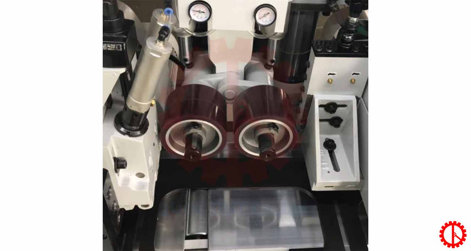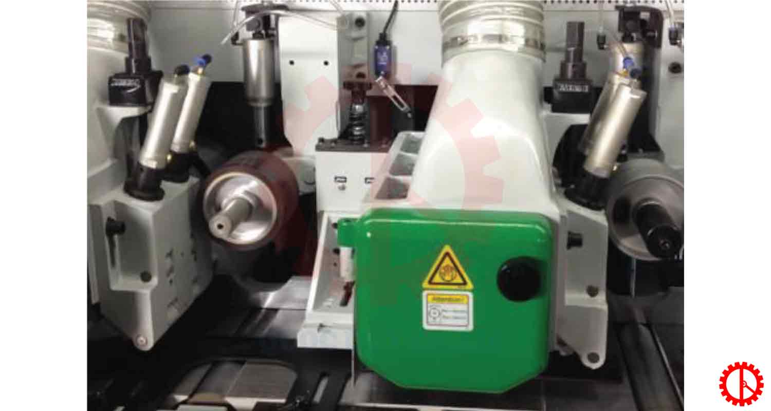 - Hệ thống rulo tì phôi Ø140/Ø35 mm giữ phôi ổn định khi bào kết hợp miệng hút bụi Ø150 mm giúp môi trường làm việc sạch sẽ giảm hao mòn trục và dao bào.