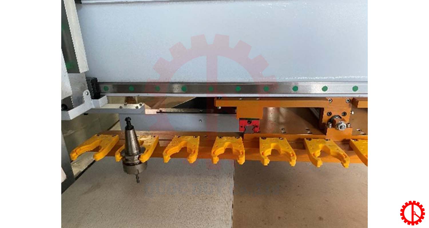 Khay thay dao ngang 12 vị trí, thay dao tự động, dễ dàng chọn nhiều loại dao cho từng sản phẩm.
