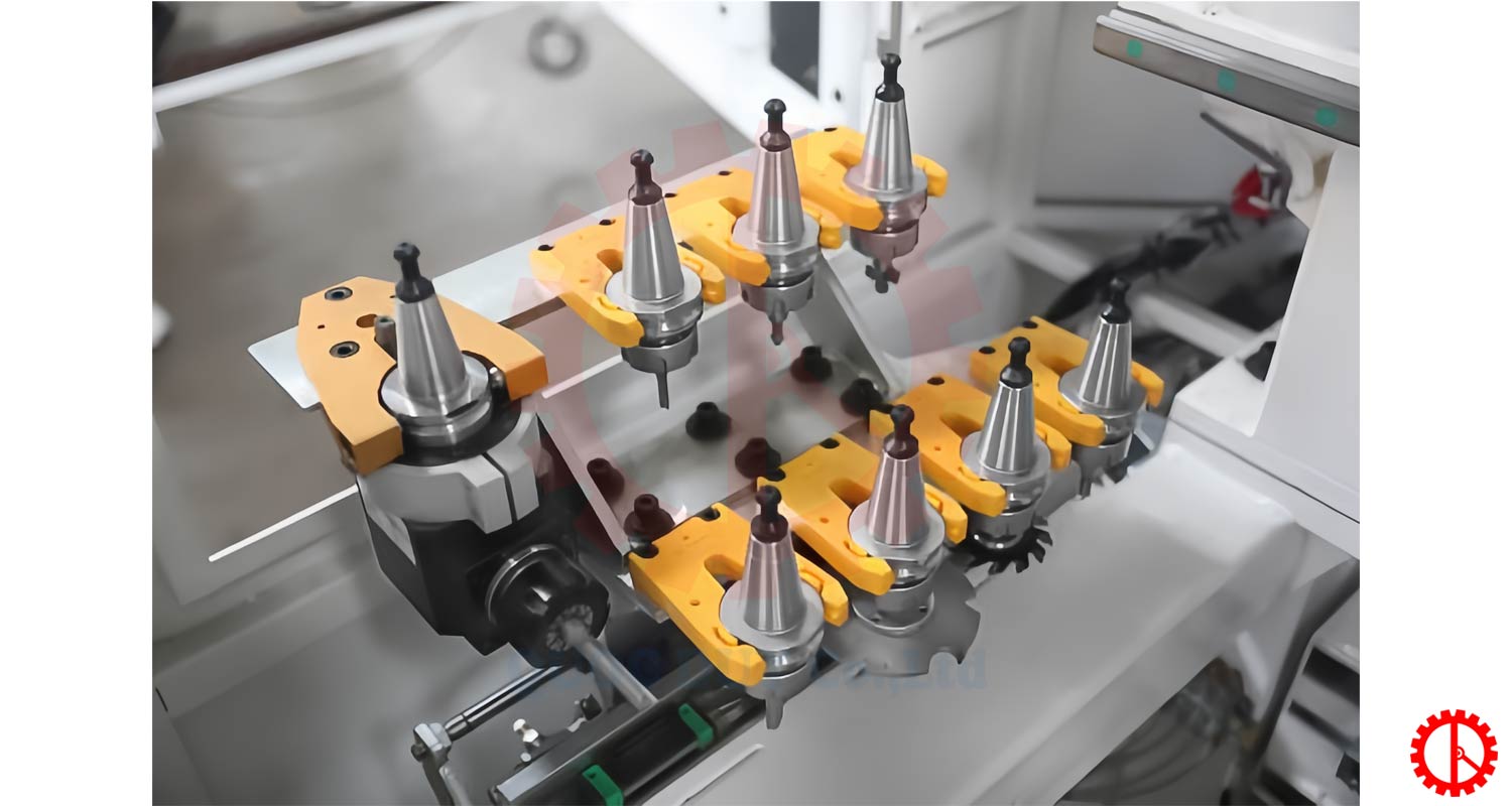 - Trang bị khay thay dao tự động dạng tuyến tính, có thể gia công tay nắm dạng vát, tay nắm âm, lamello, các chi tiết liên kết âm / ẩn…